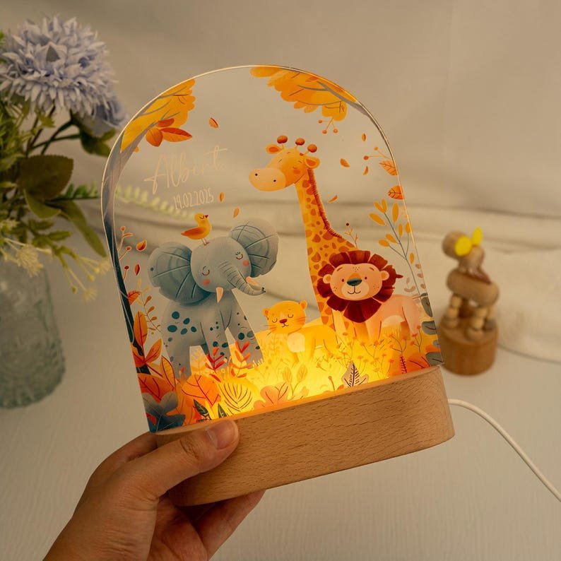 Make your child’s room magical with our Personalized LED Animal Night Lamp featuring an adorable safari jungle theme.
